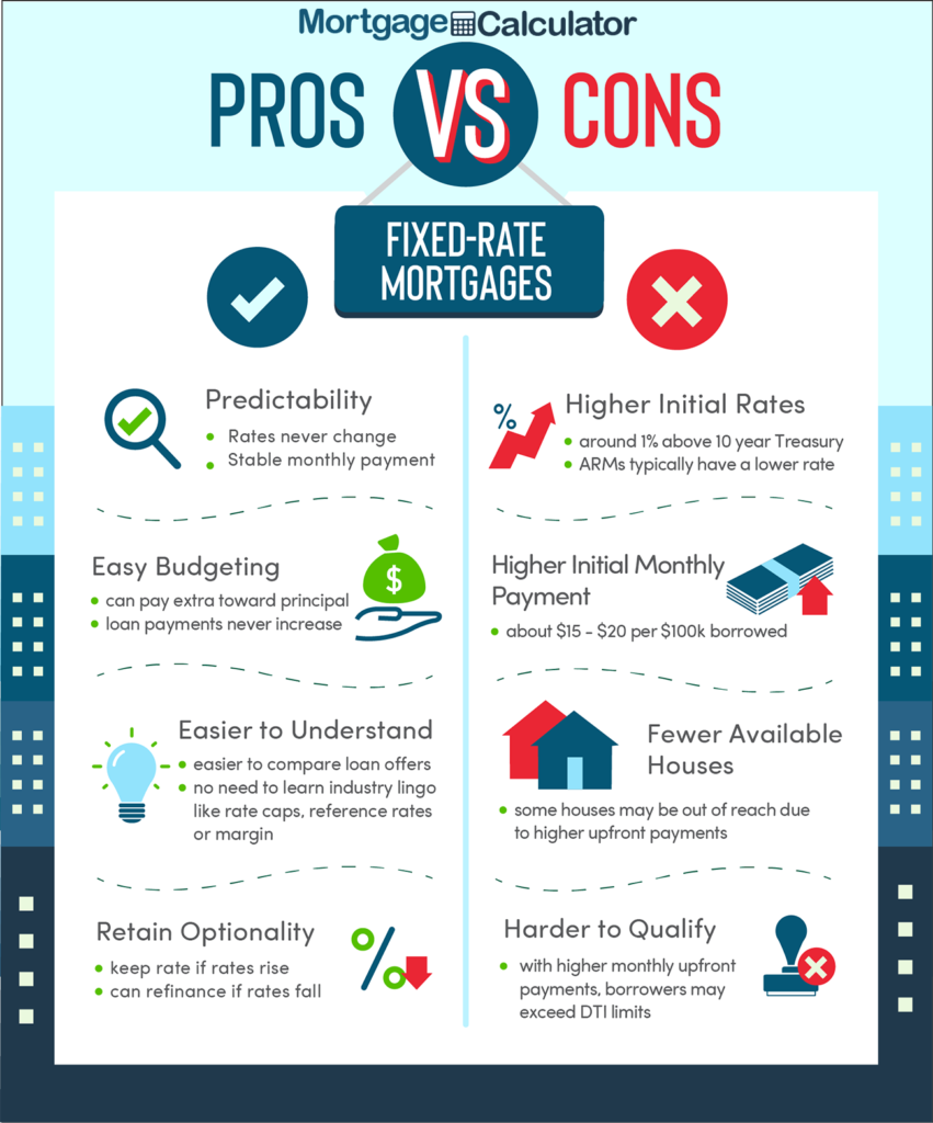 Pros: 1. Predictable payments: Your monthly payments remain unchanged, making budgeting easier. 2. Protection against rising interest rates: Your interest rate is locked in, shielding you from potential increases in the market. 3. Long-term stability: If you plan to stay in your home for an extended period, a fixed-rate mortgage offers stability and financial security.
